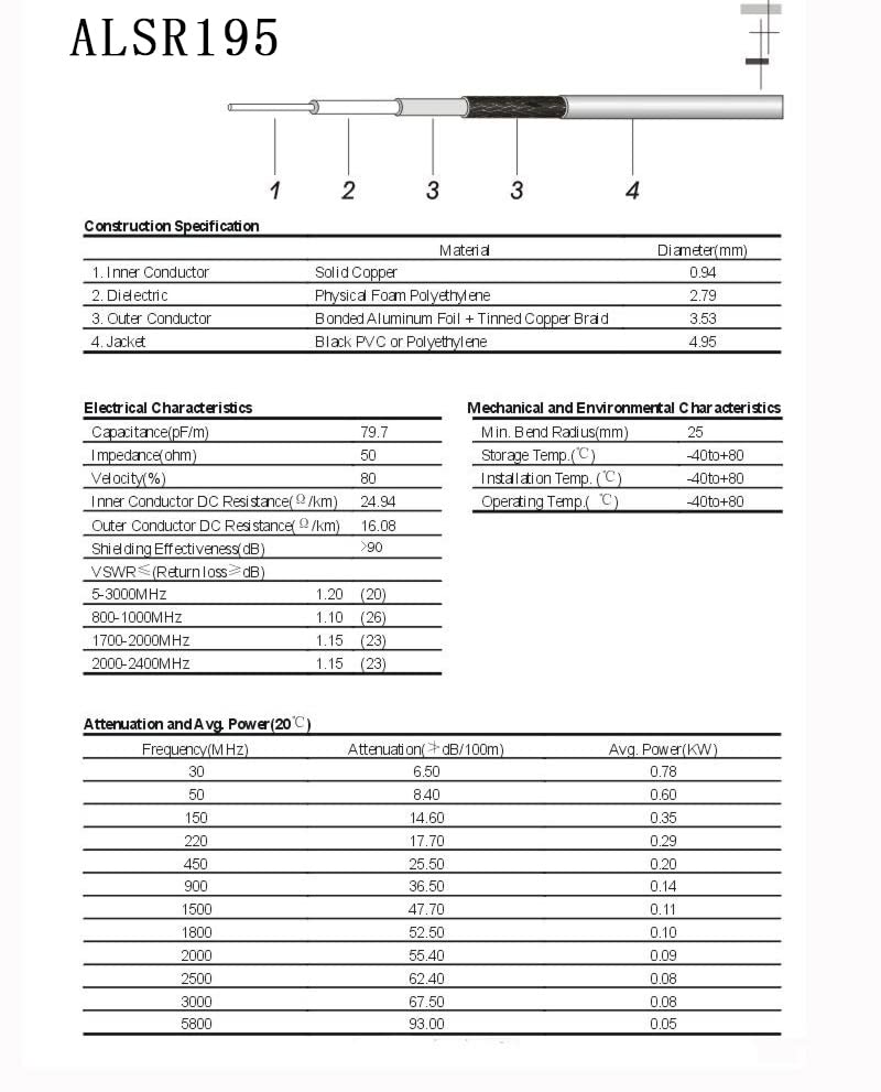 - ALSR195 low loss cable advantages: good flexibility, low attenuation, good weather resistance; Low Loss Cable ALSR195 cable is replacement for LMR195.
