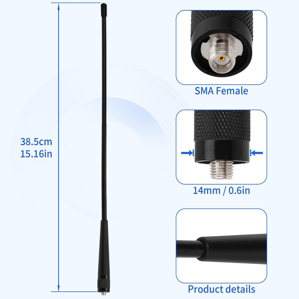 - SMA Female Connector: with SMA Female connector for easy compatibility with a wide range of handheld radios and transceivers that support SMA Male interfaces