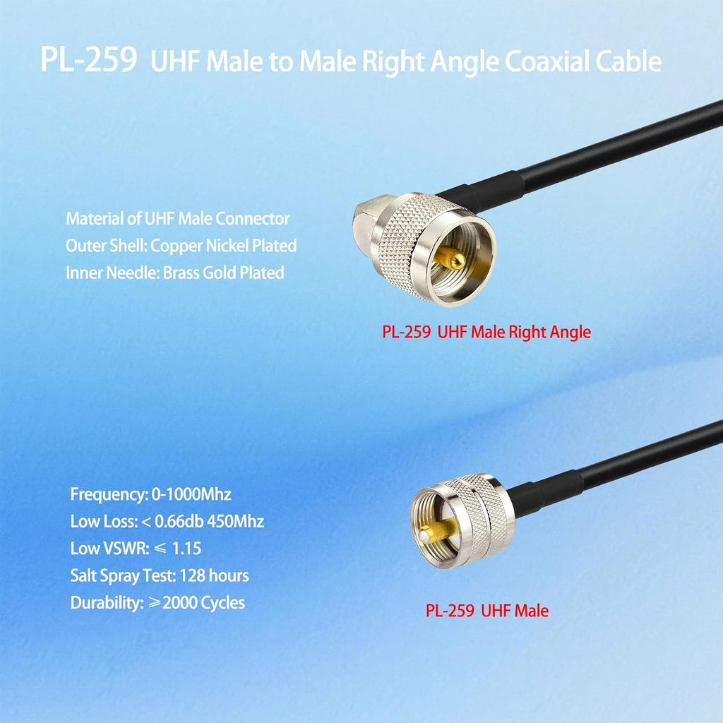 - Low Loss UHF Male PL-259 to UHF Male PL-259 Coax UHF Jumper Cable (2pcs)