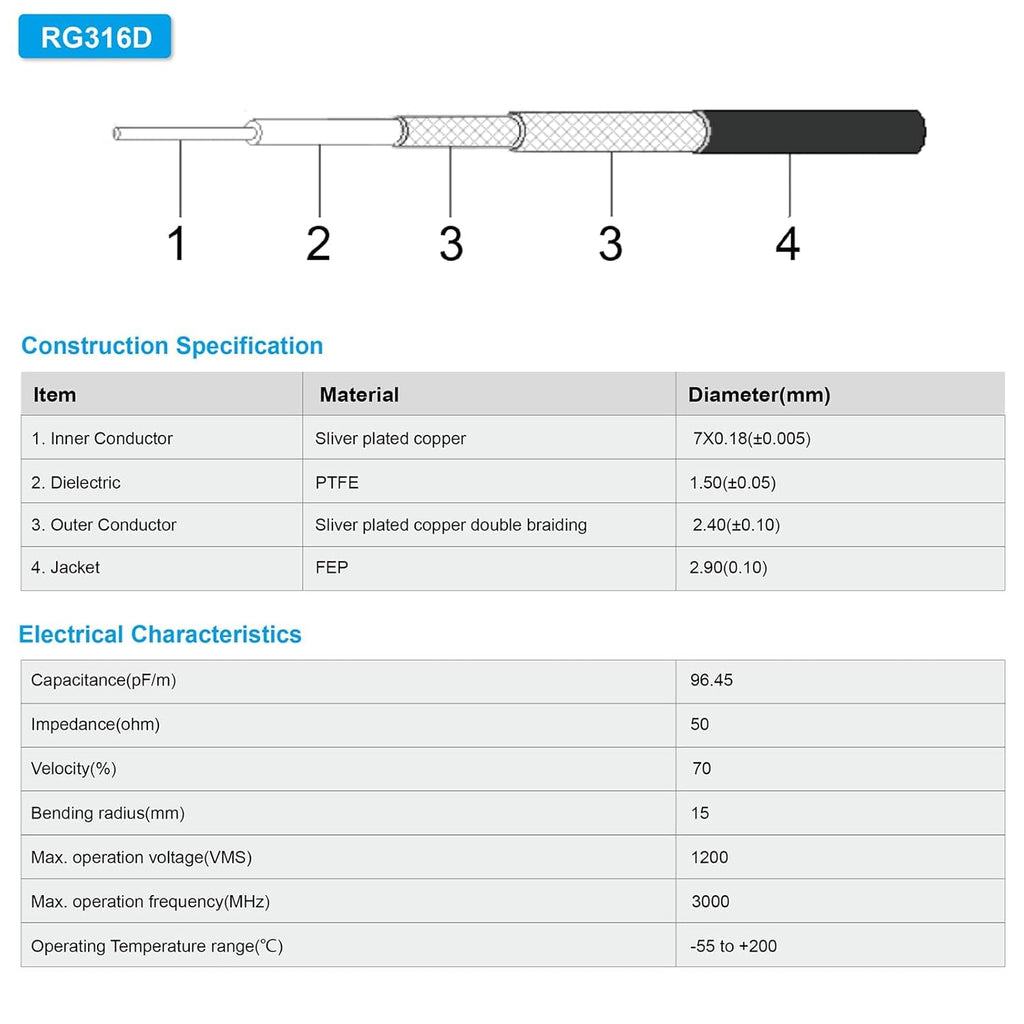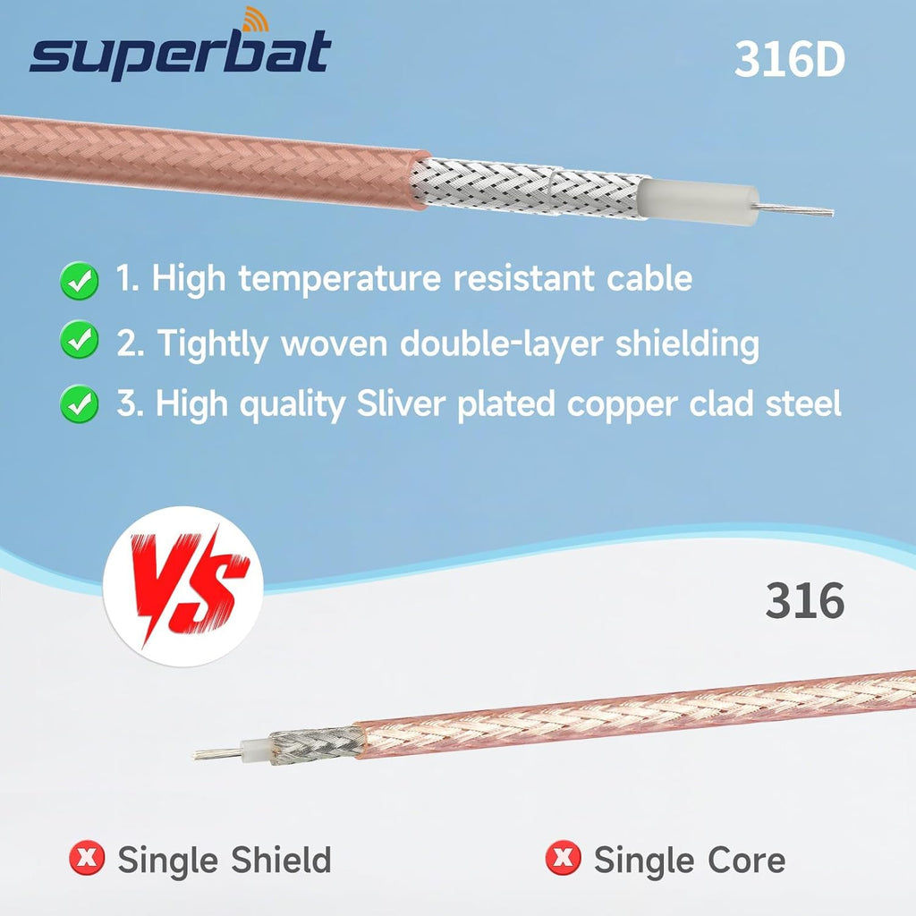 - RP-SMA Female to RP-SMA Male RG316D Extension Cable utilizes Double shielding 50ohm coaxial cable, achieving <0.5dB signal loss at 6GHz for uninterrupted 4K streaming and gaming connectivity (Ideal for WiFi 6 routers and 5G drones)