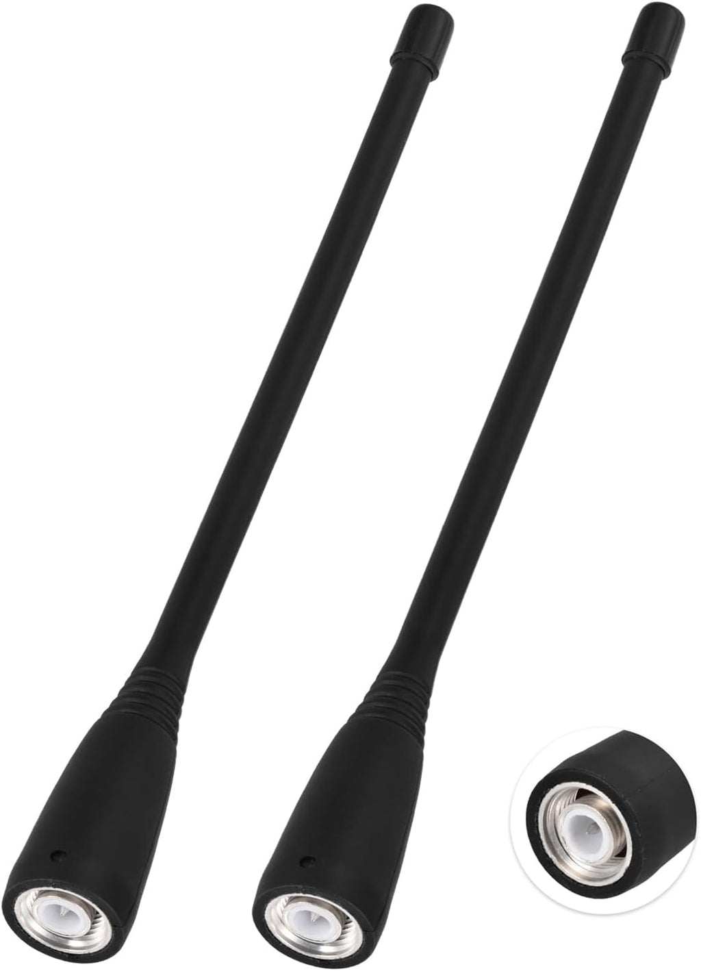 - The two way radios antenna : Gain: 2.15dBi | Length: 17 cm | Impedance: 50 ohms | Antenna Connector: TNC Male | VSWR: Less than 2.0 | Polarization: Vertical Polarization
