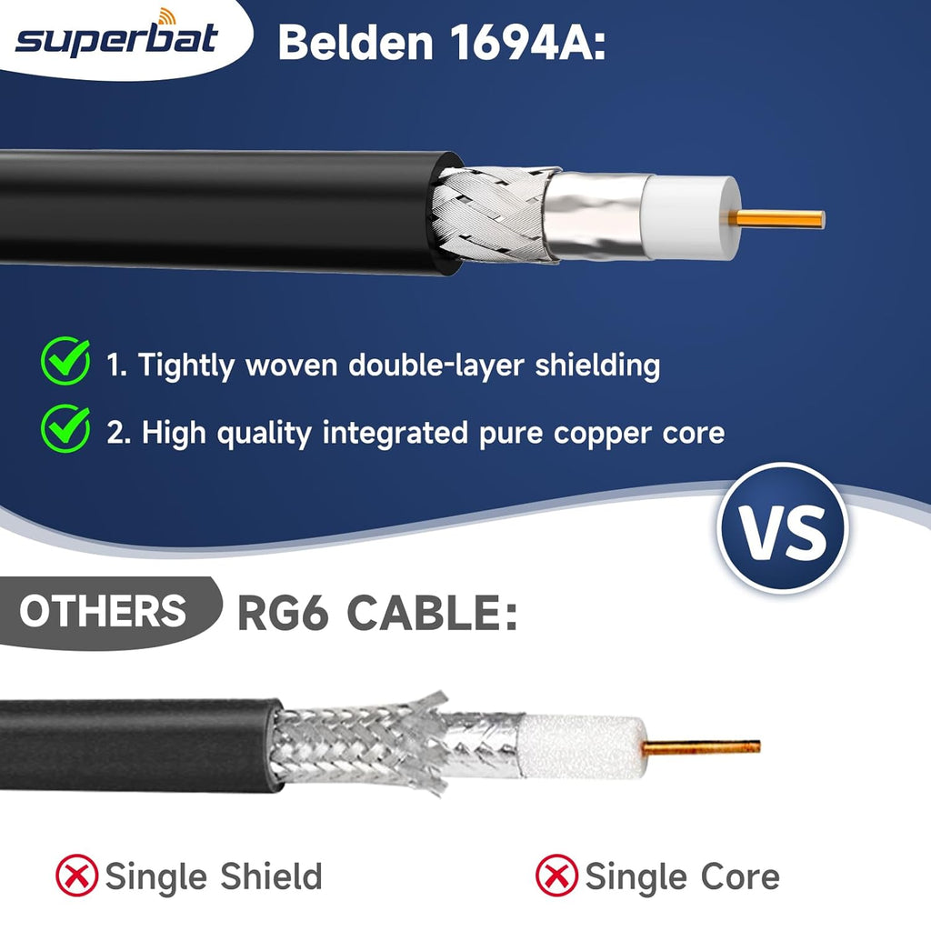 - Specifications: Both ends BNC male (plug) | Connector: Gold plated | Impedance: 75 Ohm | Cable Type: Belden 1694A;18 AWG|Standard Definition SD-SDI (270 Mbps, ST 259) HD standard HD-SDI (1.483 Gbps, ST 292)3G-SDI (2.97 Gbps, ST 424) 6G-SDI (5.94 Gbps, ST 2081) 12G-SDI (11.88 Gbps, ST 2082)