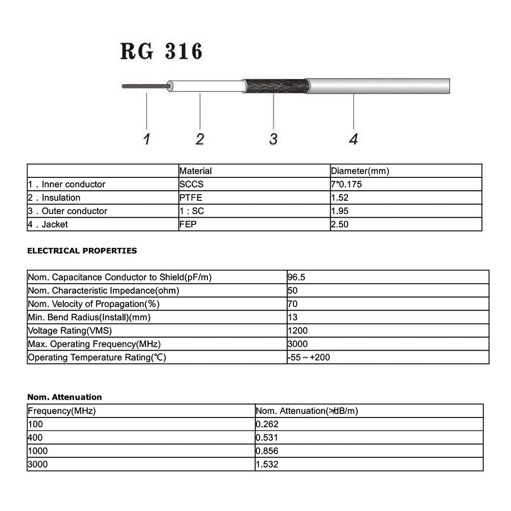 - Impedance: 50 Ohm | Cable Type: RG316 jumper cable | >1000 times mating life time.